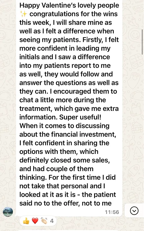 They just don’t realise that confidently recommending a follow-up plan, or knowing how to handle objections, is part of delivering great care (not separate from it).